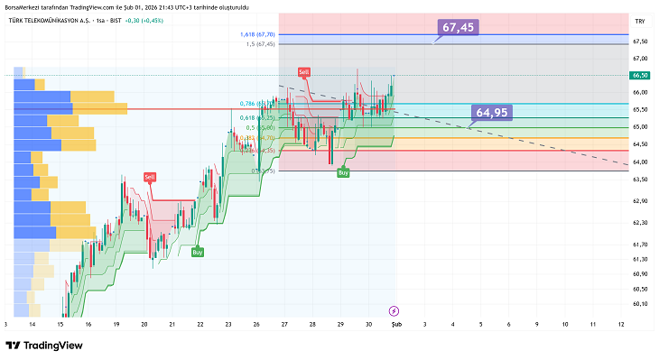 Teknik açıdan 64,95 TL birinci destek seviyesi olarak öne çıkıyor. Bu bölge hacim yoğunluğu nedeniyle kritik öneme sahip. Daha derin bir düşüşte 62,90 TL ikinci destek konumunda. Yukarı yönlü hareketlerde ise 67,45 TL birinci direnç seviyesi aşılmalı. Bu noktanın üzerinde kalıcılık sağlanırsa 67,70 TL ikinci direnç bölgesi test edilebilir.