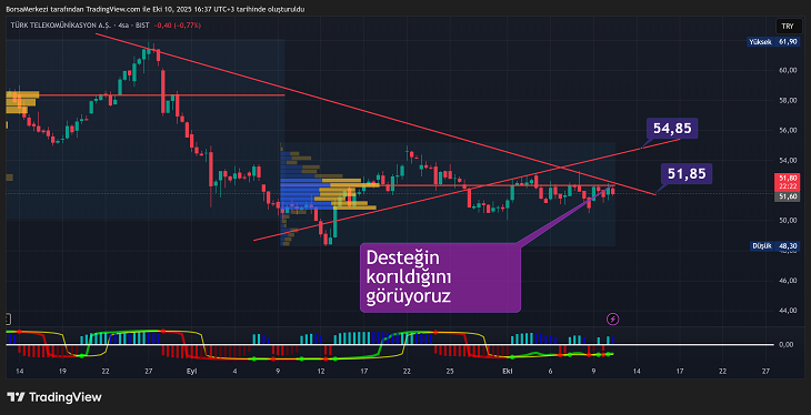 Sonuç olarak, Türk Telekom hissesi teknik göstergelerdeki karışık ancak baskı altındaki görünümü ve özellikle net gelirdeki keskin düşüş gibi olumsuz temel verileri ile dikkat çekiyor. Piyasa değerindeki büyük rakamlara rağmen, finansal sağlıktaki bu gerileme yatırımcılar için temel bir risk oluşturuyor. Kısa vadede, fiyatın 51.71 TRY pivot noktası etrafındaki hareketi ve 51.65 ile 52.00 TRY seviyelerini nasıl tepkilediği, yön belirlemede kilit öneme sahip olacaktır. Halftrend sat sinyalinde ve Ultra macd ise kararsız bulunuyor.