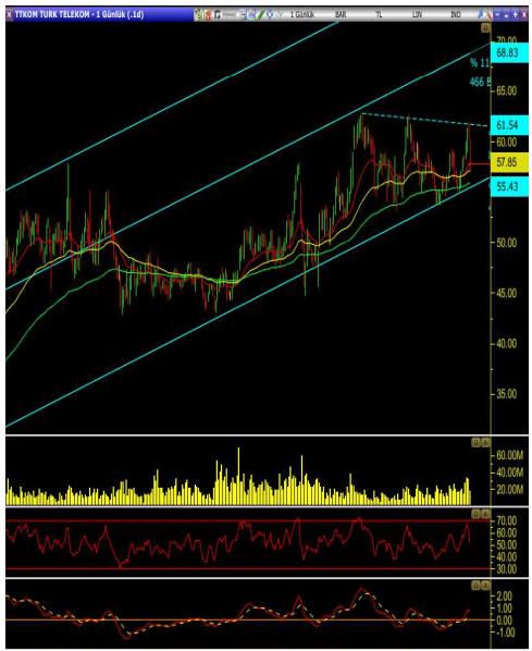 • Yukarı yönlü hareketin kalıcı olması için ilk etapta 61.55 direncini aşması gerekecektir. Hisse bu direnç üzerinde bir kapanış gerçekleştirir ise alım iştahının devamını da getirecektir.