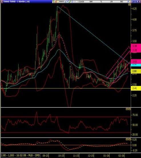 Olası tepki denemelerinin öne çıkması halinde bollinger orta bant 2.86 seviyesi üzerinde kalıcı kapanışların görülmesi önem arz ediyor. Bu seviyenin üzerinde kanalın alt bandına yaklaşacağından alımların devamını görebiliriz.