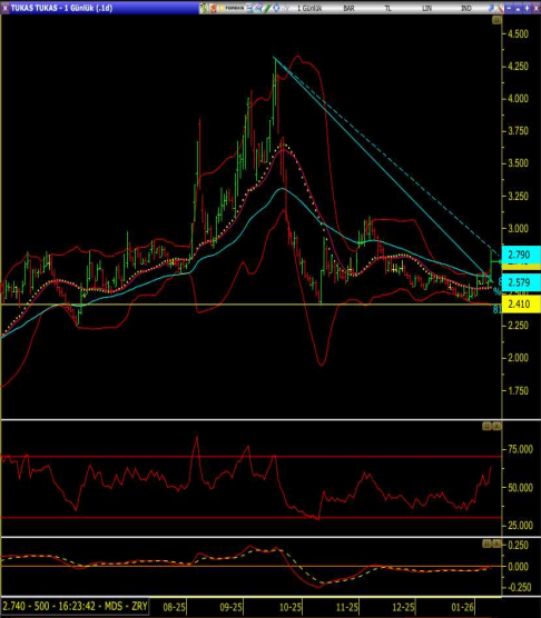 Olası kar realizasyonlarının oluşumu durumunda bollinger üst banda karşılık gelen 2.69 seviyesinde mevcut pozisyonlar korunabilir.