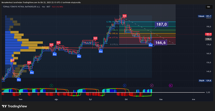 Şirketin F/K oranı 16,31 seviyesinde bulunurken, %13,9’luk temettü verimi dikkat çekici bir düzeyde seyrediyor. 339,3 milyar TL piyasa değerine sahip olan TÜPRAŞ, net borç pozisyonunda 50,5 milyar TL’lik bir yükümlülük taşıyor. 25 Eylül’de gelen süpertrend satışı devam ediyor. 166 TL’de güçlü destek var ancak makro piyasaların volatilitesi takip edilmeli.