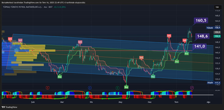 TUPRS (Tüpraş) hissesi, teknik olarak “Al” sinyali veriyor. Özellikle hareketli ortalamalara göre güçlü alım baskısı gözleniyor. RSI (14) değeri 63 civarında, yani nötr-yukarı yönlü bölgede. Momentum ve Awesome Oscillator pozitif seyrediyor. Stokastik göstergeleri de %85-%86 ile aşırı alım bölgesine yakın. Günlük %1.93 düşüşe rağmen haftalık %8.5, aylık %15.8 ve 3 aylık %22.1 getirisi var.