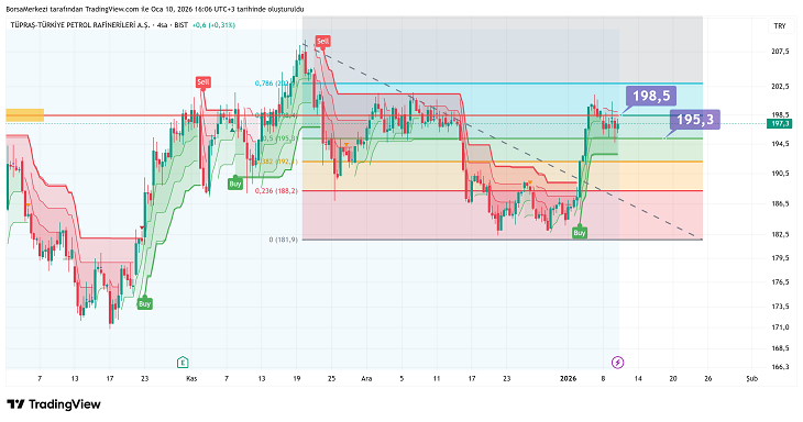 TUPRS direnç seviyeleri olarak 200 TRY psikolojik seviyesi ve 205-210 TRY aralığındaki bir sonraki hedef bölge önem kazanıyor; bu seviyelerin aşılması durumunda yukarı yönlü momentum güçlenebilir.