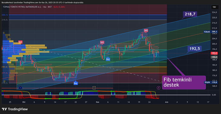Değerleme açısından F/K oranı 14.4 ile makul seviyelerde. BİST’te 5 yıllık ortalama temettü verimi %2’nin üzerinde olan hisseler cazip kabul edilirken, TUPRS’un %13.9’luk temettü verimi piyasa ortalamasının çok üstünde ve gelir yatırımcısı için oldukça çekici. Piyasa değeri son bir ayda %9.4, üç ayda %21 büyümüş, hisseye olan ilgi artmış. Williams %R -73 seviyesinde aşırı satım bölgesine yakın, teknik toparlanma potansiyeli taşıyor. Yatırımcılar için kritik seviyeler: 192 TL desteğin altı kapanış risk, 218 TL direncin üstü kalıcılık ise yeni yükseliş dalgası getirebilir. Süpertrend 208 TL’den sat sinyali vermişti. Her an pozitif olup yeşilleri yakabilir.