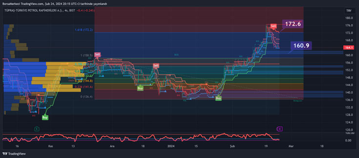 TUPRS 164.1 TL seviyesinde sembolik pozitif bir kapanış yaptı. Ichimoku Göstergesine bir göz atarsak, Ichimoku bulutu, kısa vadeli trendin gücünü ve yönünü belirlemekte kullanılır. Ichimoku bulutunun altında olmak, genellikle bir satış sinyali olarak kabul edilirken bulutun üstünde olmak alış sinyali olarak yorumlanabilir.