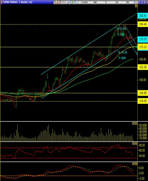 • Ancak hisse tepki alımlarının devamını getirir ise 178.50 seviyesi ilk direnç olmak üzere sırasıyla 184.10 ve 194.4 seviyeleri hedeflenebilir.