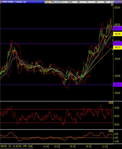 • Bundan kaynaklı tepki alımlarının devamının gelmesi bollinger orta banda karşılık gelen 197.50 seviyesinin üzerinde kapanışlar görmeliyiz. Bu seviyenin üzerinde 201.20 seviyesine doğru yükselişler ivmelenebilir.