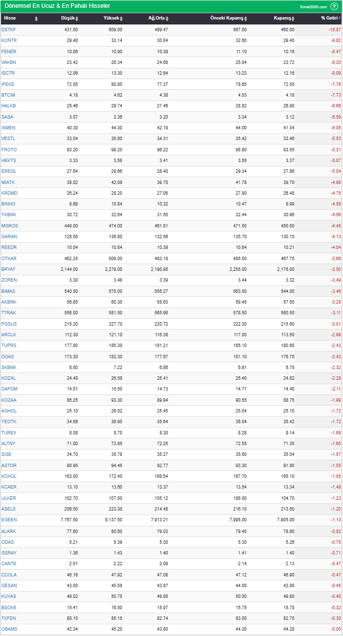 Hisse senedinin seçilen baza göre bağıl getirisinin gösterildiği tablodur. “Ucuz hisseler” tablosunda seçilen baza göre bağıl getirisi negatif olanlar görüntülenir. Baz getiriye göre ucuz ve pahalı hisselerin listelenmesi, hem endeks bazında hem de sektör bazında hızlı hareket eden yada yavaş hareket hisseleri görebilmenizi sağlar.