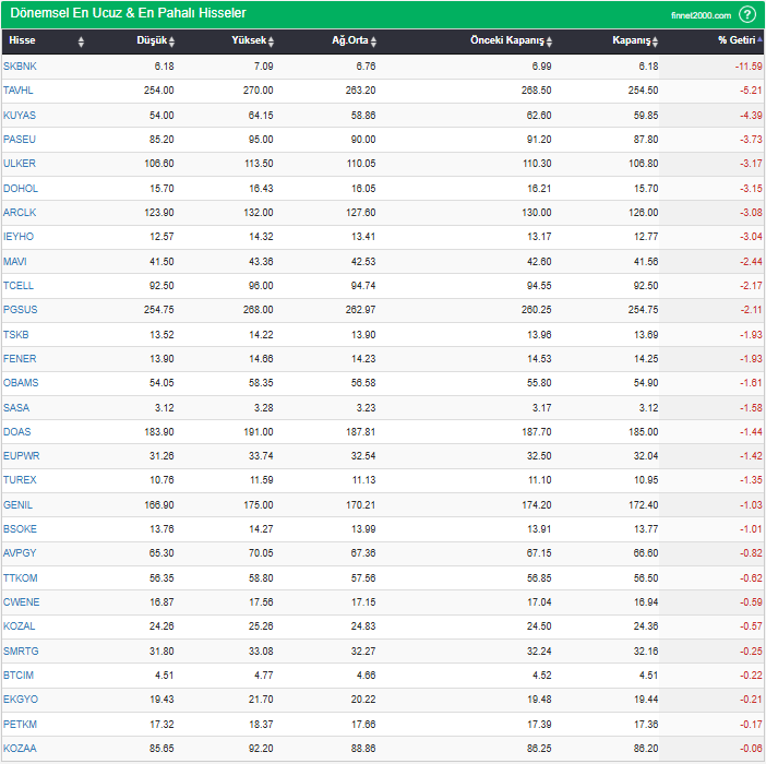 Hisse senedinin seçilen baza göre bağıl getirisinin gösterildiği tablodur. “Ucuz hisseler” tablosunda seçilen baza göre bağıl getirisi negatif olanlar görüntülenir. Baz getiriye göre ucuz ve pahalı hisselerin listelenmesi, hem endeks bazında hem de sektör bazında hızlı hareket eden yada yavaş hareket hisseleri görebilmenizi sağlar.