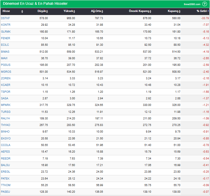 Hisse senedinin seçilen baza göre bağıl getirisinin gösterildiği tablodur. “Ucuz hisseler” tablosunda seçilen baza göre bağıl getirisi negatif olanlar görüntülenir. Baz getiriye göre ucuz ve pahalı hisselerin listelenmesi, hem endeks bazında hem de sektör bazında hızlı hareket eden yada yavaş hareket hisseleri görebilmenizi sağlar.