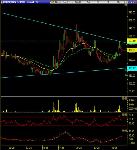 Bu bölgenin hacimli kırılması halinde 220 ve üzeri yeni momentum başlatabilir. Kritik direncin altında dalgalanma riski sürüyor; özetle 183 üstünde olumlu, iken hareketli ortalamalarının altına inilmesi ile aşağı yönlü hareket hızlanabilir.