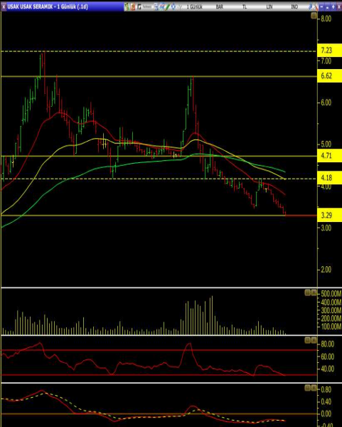 • Hareketli ortalamaların hepsi aşağı yönlü Hacim düşük. 3.29 kırılırsa, aşağıda boşluk var ve 3.00 veya altı test edilebilir.