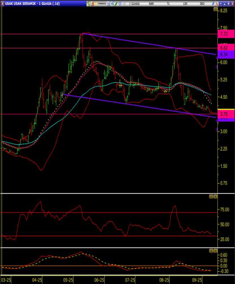 • Geri çekilmelerin devamı halinde 3.75 destek seviyesinde mevcut pozisyonlar korunabilir. Bu seviyenin altına yerleştiğinde ise bollinger alt banda hem de kanalın alt bandına denk gelen 3.63 seviyesine doğru baskı daha da artabilir.