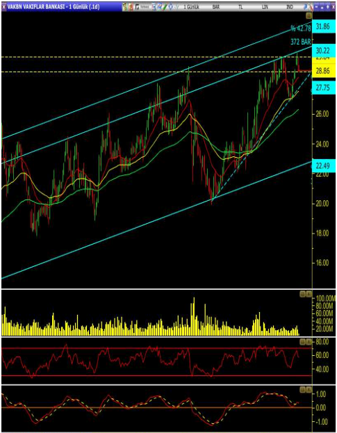 • Uzun vadeli yükselen kanal içinde hareket eden hisse, 30.10 direncini test etmesinin ardından geri çekiliyor.