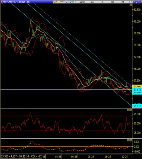 Bu seviyenin altında bollinger orta banda karşılık gelen 32.10 seviyesine doğru güç kaybı yaşanabilir.