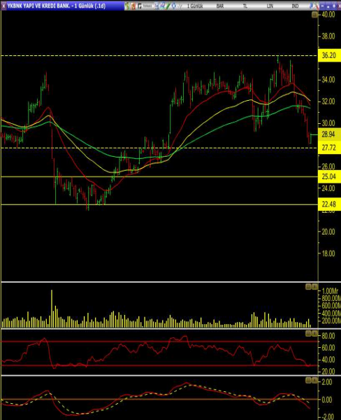 • Genel görünüm; trend aşağı dönmüş durumda, hissede satış baskısının azalmadığını ve alıcıların da yine henüz güç kazanmadığı söylenebilir. Bu anlamda 27.72 desteği korunamadığı takdirde satışların hızlanması beklenebilir.