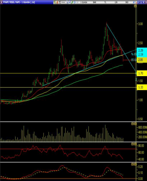 • Teknik olarak güvenli alım için günlük kapanışın belirgin şekilde azalan trend çizgisinin ve ortalamaların üzerine çıkması gerekiyor.